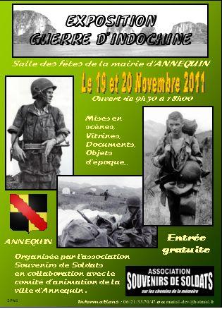 Salle des fêtes de la Mairie d'ANNEQUIN - 62149 (PAS-DE-CALAIS) Entre LA BASSEE et BETHUNE / Dates: Les 19 et 20 novembre 2011 / Ouvert de 9h30 à 18h00 / Mises en scène, vitrines, documents, objets d'époque Organisée par l'association SOUVENIRS DE SOLDATS en collaboration avec le Comité d'animation culturel de la Ville d'Annequin 62149 / Entrée Gratuite / Informations: 06.21.33.70.47 / Site: www.souvenirsdesoldats.e-monsite.com