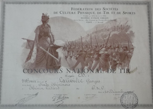 | Le 20 décembre 1925 / Hénin-Liètard / Hénin-Beaumont / Pas-de-Calais / Concours National de Tir / Société Stade Héninois - Décerné à M. Georges LARIVIERE - |