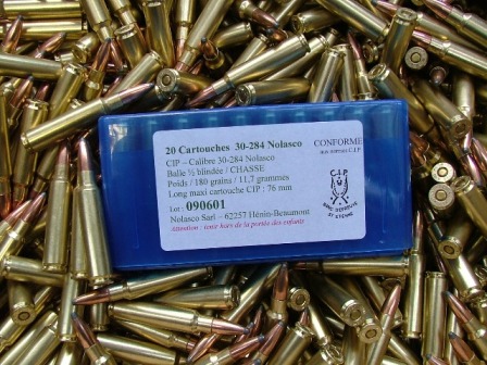 30-284Nolasco dont la longueur totale maximale CIP est de 76 mm. Nous avons également arrêté la production des cartouches 30-284 Winchester à 72 mm pour nous