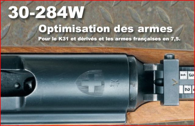 techniques de transformation des fusils Schmidt-Rubin effectuées par notre atelier permettent l’utilisation de cartouches 30-284 dont la longueur totale atteint 76 mm,
