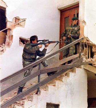| Bonjour M. Nolasco, cette article relate les faits de l'assaut du pont de Verbania à Sarajevo qu'une section de mon régiment a mené le 27 mai 1995. J'y était mais prisonnier des serbes. Le 26 mai 1995 nous avons été fait prisonnier avec mon groupe puis emmené dans une prison militaire du côté de Dubrovnik. Le 27 mai 1995 les serbes ont attaqué le poste français en se déguisant avec notre matériel .... / Le 12 juin 1995 nous avons été libéré par les forces spéciales avec les efforts négociés de Monsieur Le Président de la République Jacques Chirac. Cela m'a valu une citation à l'ordre du régiment. Amitié Jean-Yves. www.lefigaro.fr/international/2006/05/27/01003-20060527ARTFIG90500 - Assaut du pont de Sarajevo.php