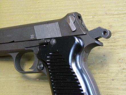 2) Très bel état - Finition d'origine et réglementaire Armée Française - Parties métalliques carcasse-bâti et glissière avec coloris de parkérisation différent - Plaquettes de poignée avec marques d'utilisation. Prix: 400 € + 20 € de port.